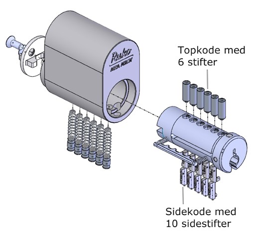De cilinder maakt gebruik van geavanceerde, gepatenteerde technologie van een van 's werelds veiligste mechanische sluitsystemen, Ruko dp. De cilinder is opgebouwd uit 16 geavanceerde pinnen, die het aantal sleutelcombinaties aanzienlijk verhogen en de veiligheid aanzienlijk vergroten.